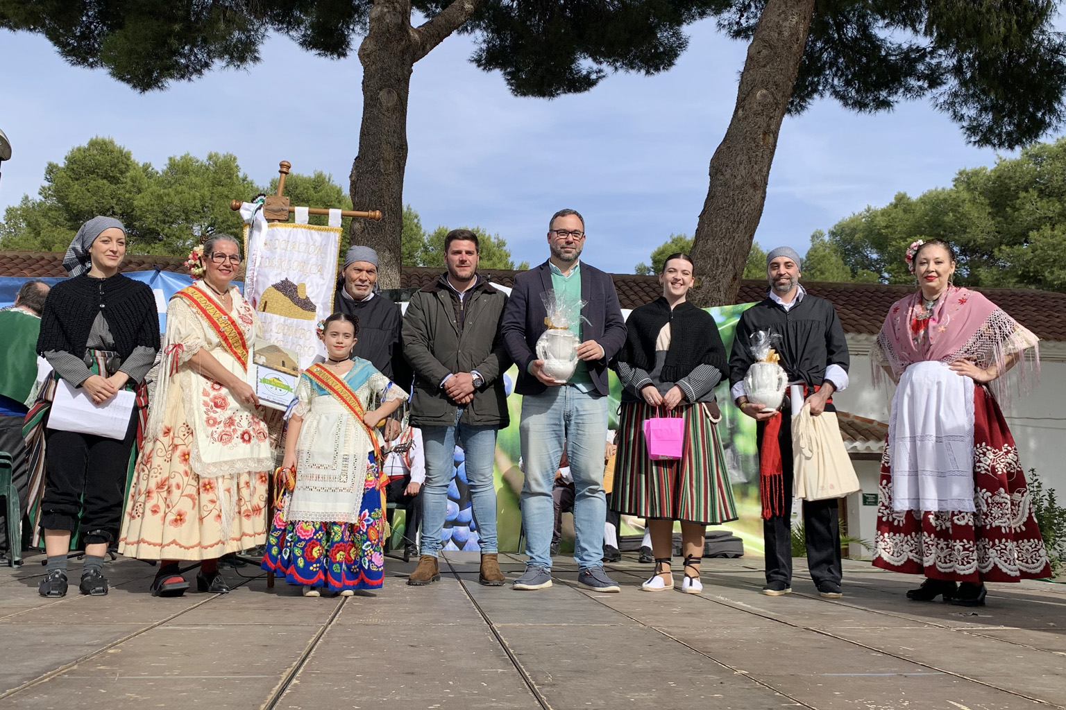 Allí estuvo el alcalde de Tomelloso, Javier Navarro que, acompañado por el concejal de Festejos, Manuel Marquina, el de Agricultura, Jesús Lara y la concejala de Turismo, Rocío Valentín, asistió a la celebración religiosa, saludó a los participantes en los concursos gastronómicos, deseándoles suerte e hizo entrega de un recuerdo a los dos grupos participantes en el Festival Folclórico: Coros y Danzas “El Molinico Alguazeño”, de Alguazas (Murcia) y el anfitrión, la Asociación Folklórica El Bombo, de Tomelloso.