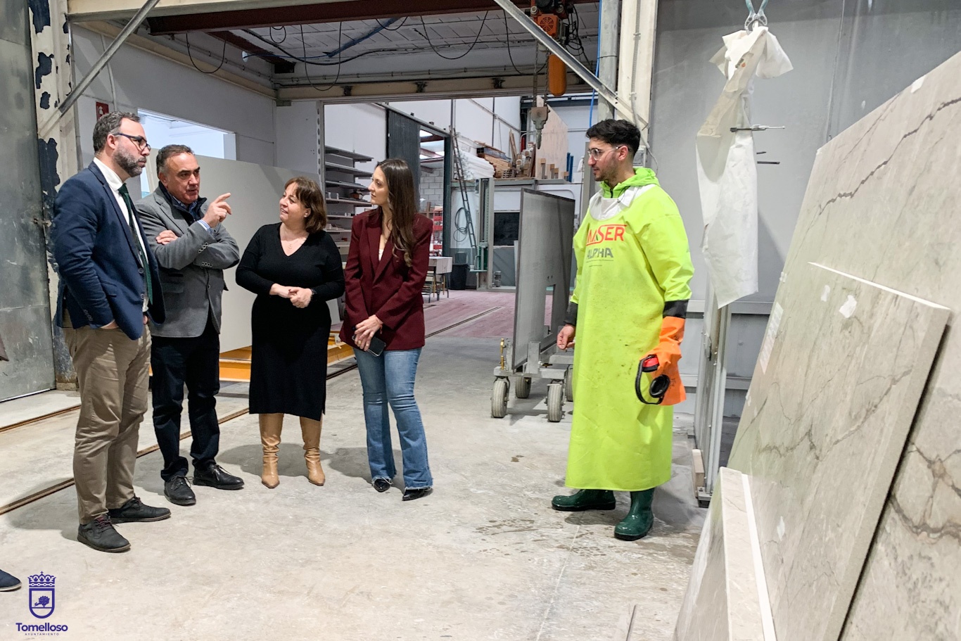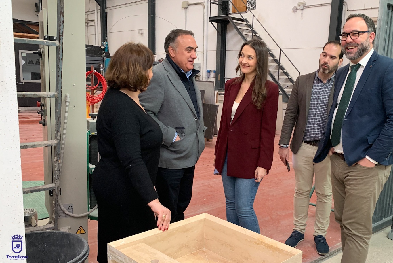 El alcalde de Tomelloso, Javier Navarro, ha visitado este martes, acompañado por los concejales de Promoción Económica y Urbanismo, Rocío Valentín y Benjamín de Sebastián, respectivamente, las instalaciones de la empresa Pinacar, especializada en el diseño y fabricación de elementos en piedra natural, con más de veinte años de experiencia en el sector y un reconocido prestigio avalado por la participación en multitud de proyectos nacionales e internacionales de gran relevancia. Un ejemplo, ha afirmado Navarro, de la “excelencia” del tejido industrial de Tomelloso, “del que podemos presumir”.