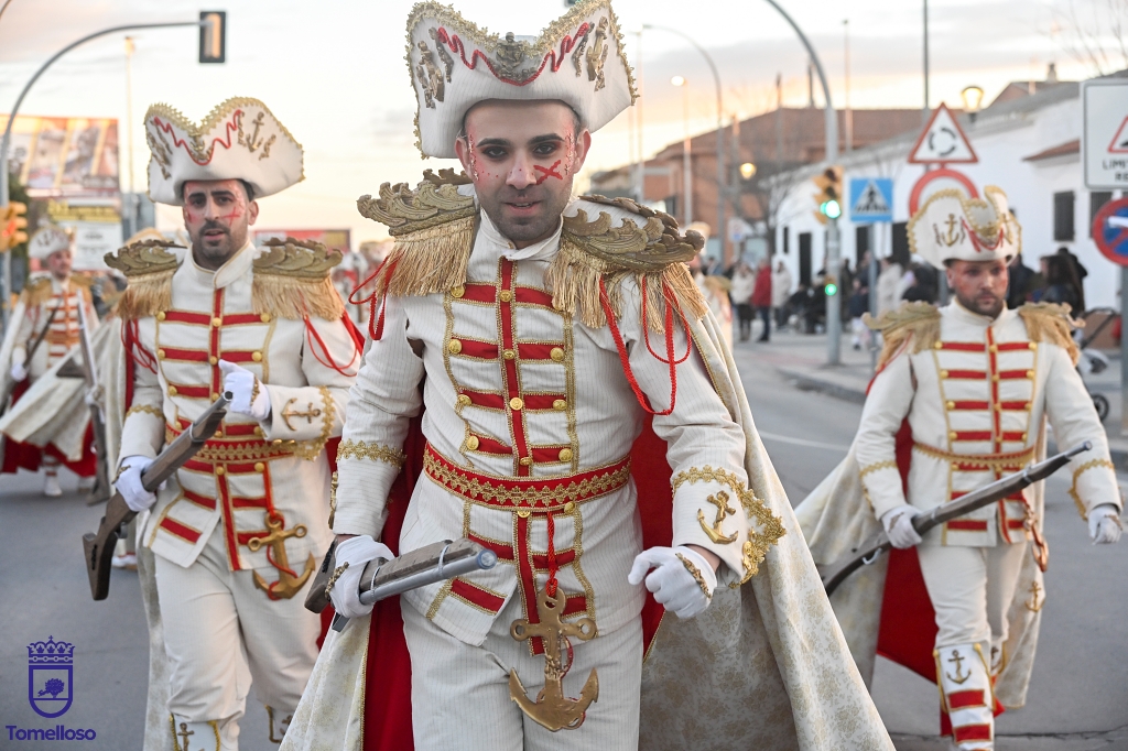 El desfile, que se ha celebrado este sábado en Tomelloso, ha variado su recorrido habitual trasladándose a la Avenida Juan Carlos I para evitar el paso por zonas arboladas, con el fin de prevenir riesgos ante la alerta por fuertes vientos. A pesar del frío, el público ha salido a la calle para disfrutar del ambiente festivo del Carnaval y el espectáculo ofrecido por las peñas participantes.