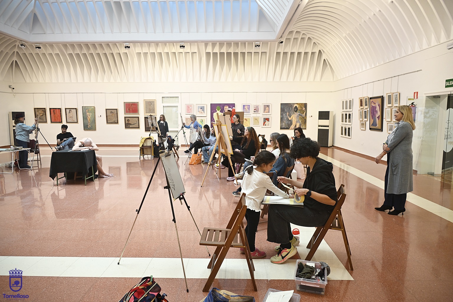 Según explicó Caroline Culubret, la idea de esta jornada ha sido aprovechar la exposición “Referentes” para trasladar la sesión semanal del colectivo fuera del estudio habitual y compartir su labor con el público. Para la artista tomellosera, “se trata de una actividad muy bonita y gratificante que permite acercar el dibujo al natural a todos los amantes del arte”.