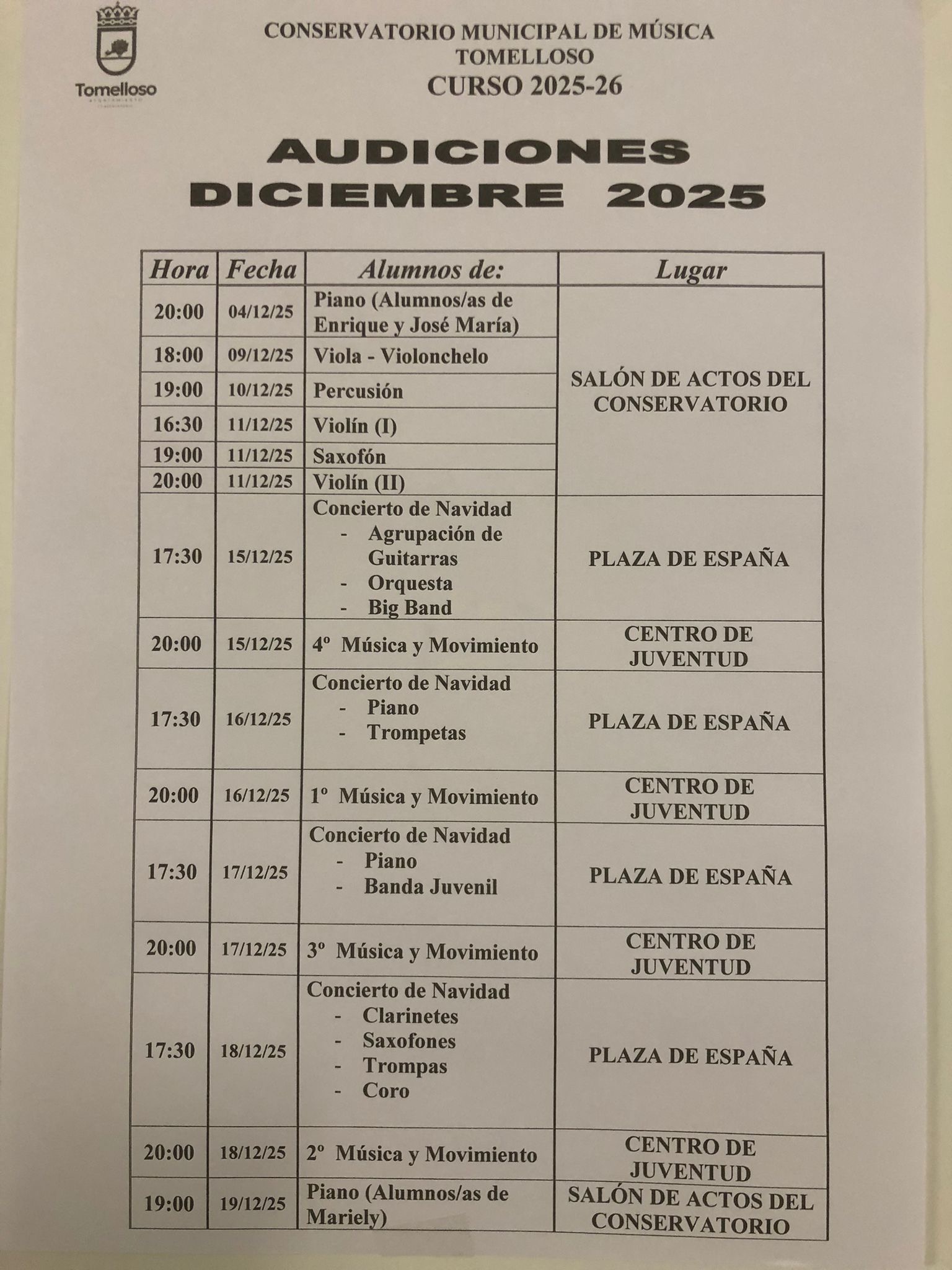 Conciertos Navidad 2025. Conservatorio Municipal de Música "Luis Osuna Migallón"